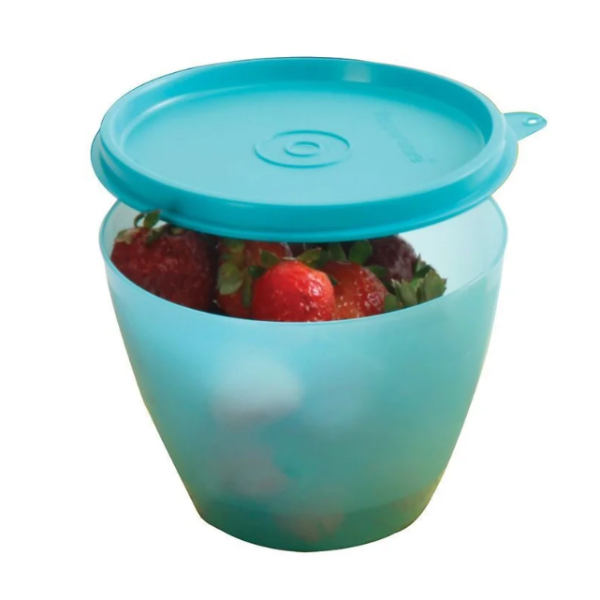 Su forma de tazón es ideal para conservar en la heladera porciones individuales de sopa, caldo, frutas, etc.